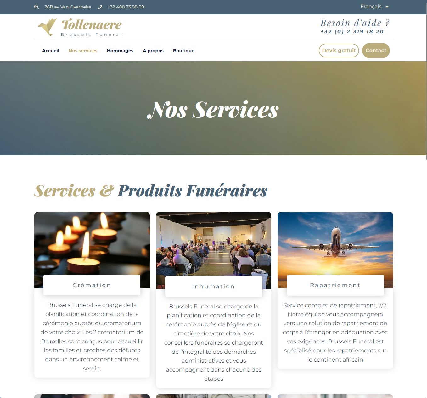 - Optimisation pour le référencement : Améliorer la visibilité locale sur les recherches liées aux services funéraires à Bruxelles.